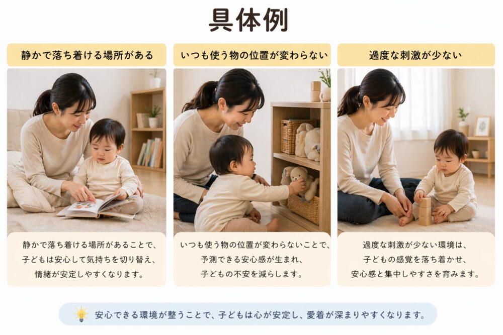 安心できる環境があることで子どもは落ち着いて過ごせる。