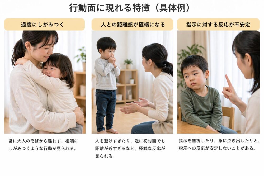 愛着形成が不安定な場合、行動にわかりやすい変化が出ることがあります。