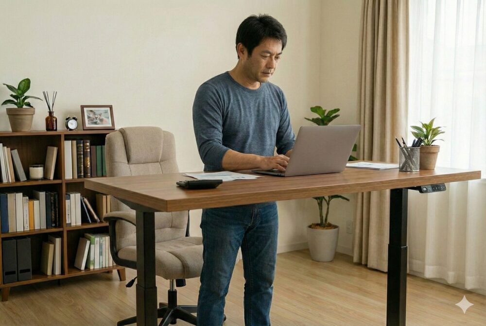 スタンディングデスクは腰の負担を軽減し、姿勢改善や集中力の維持にも役立ちます。
