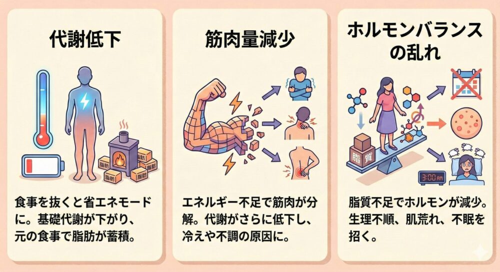 体への悪影響|代謝低下・筋肉量減少・ホルモン乱れ