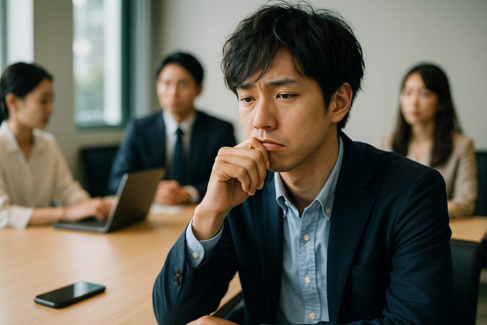 朝のミーティング、指名されても言葉が続かず気まずい沈黙。