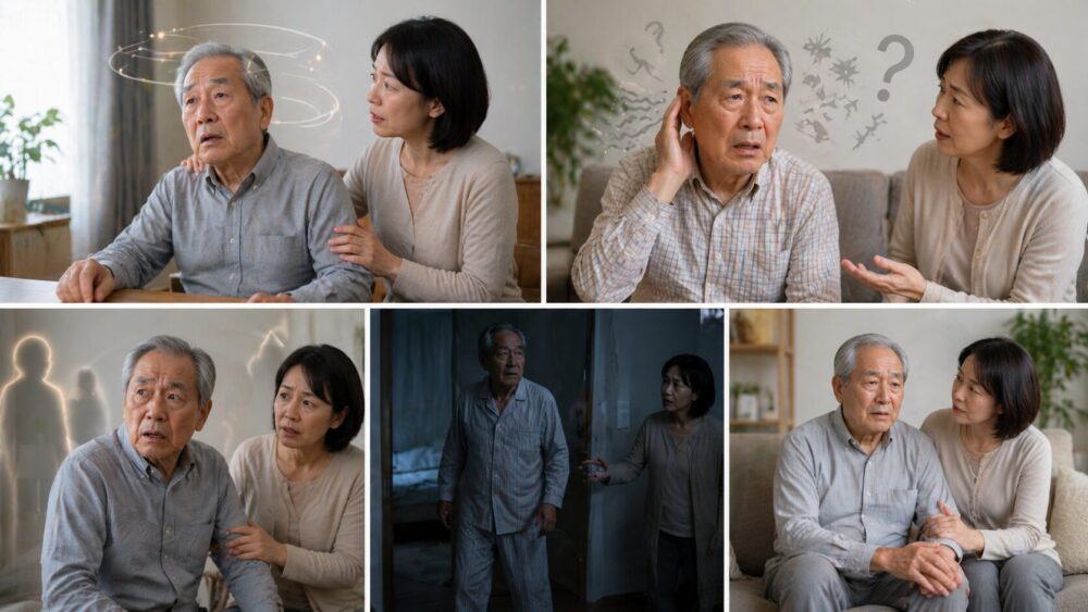 高齢者に多く、体調や環境の変化に影響を受けやすいため、放置すると転倒や事故のリスクが高まります。