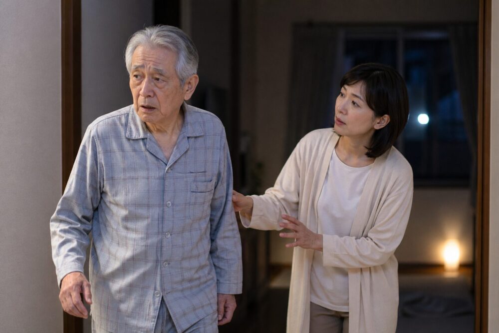 夜間せん妄は、急に意識や行動が乱れる状態で、とくに夜間に症状が強く出やすい特徴があります。